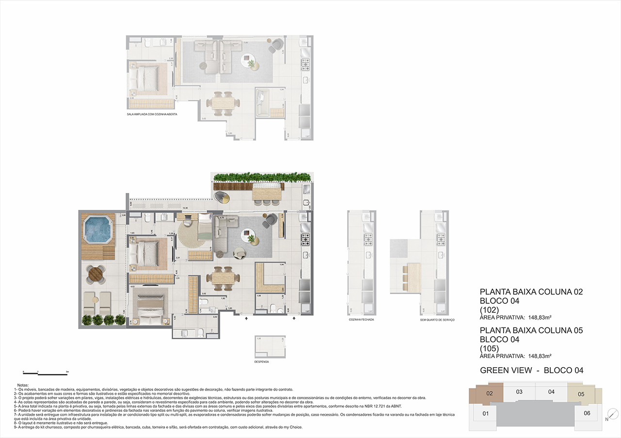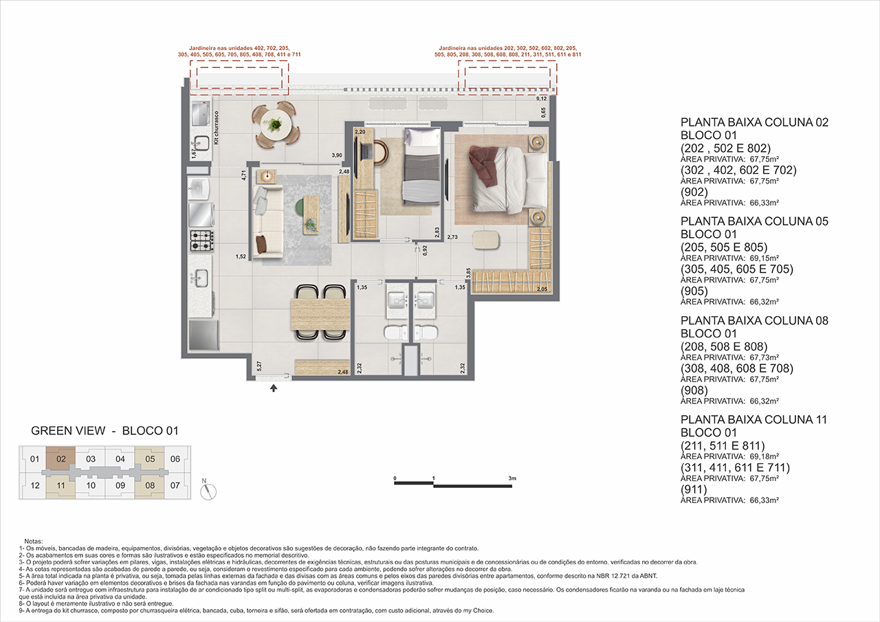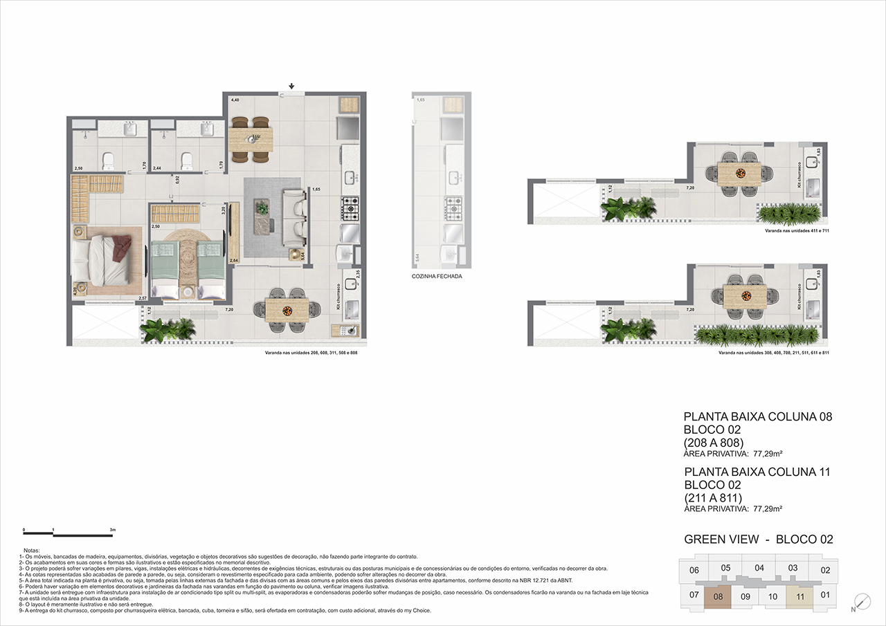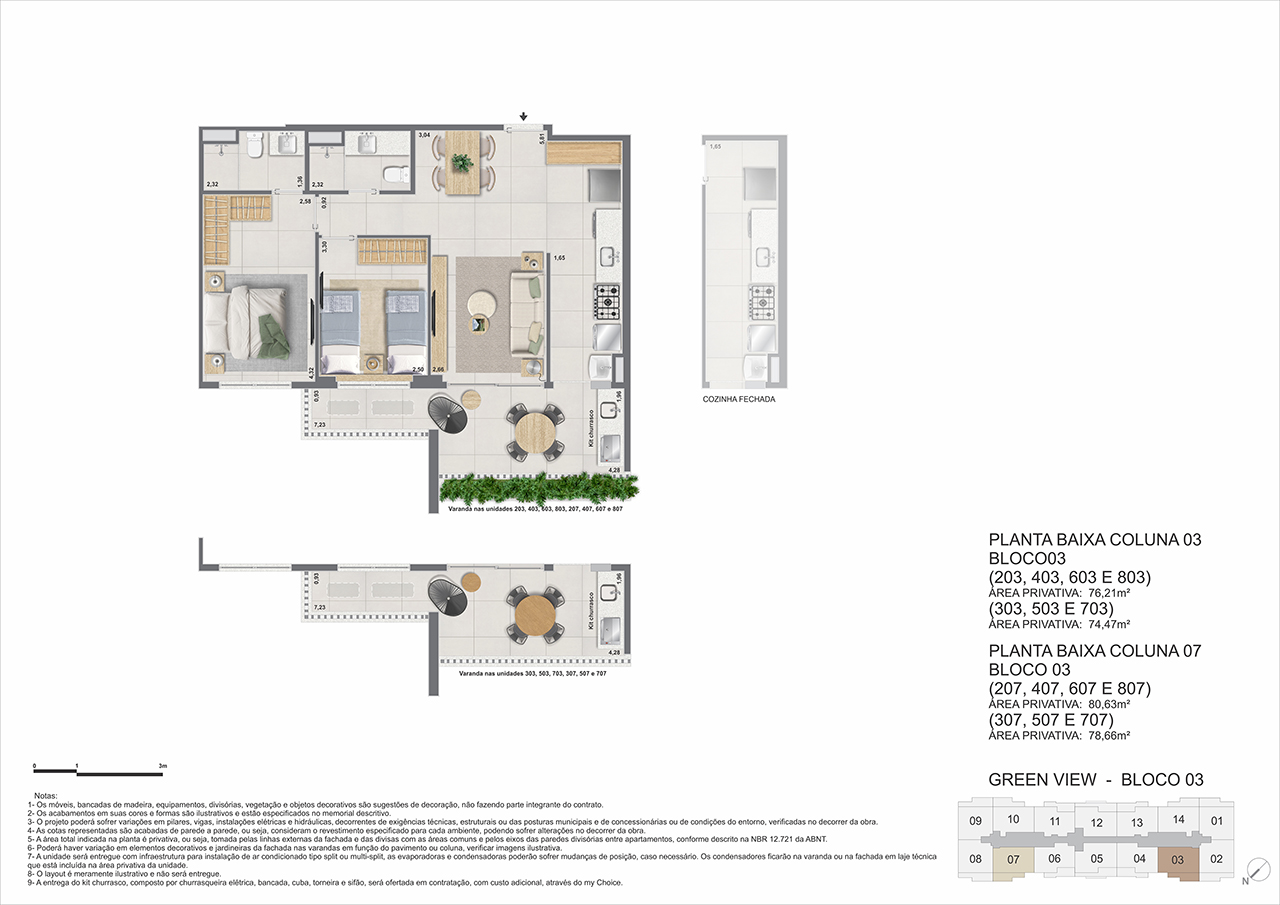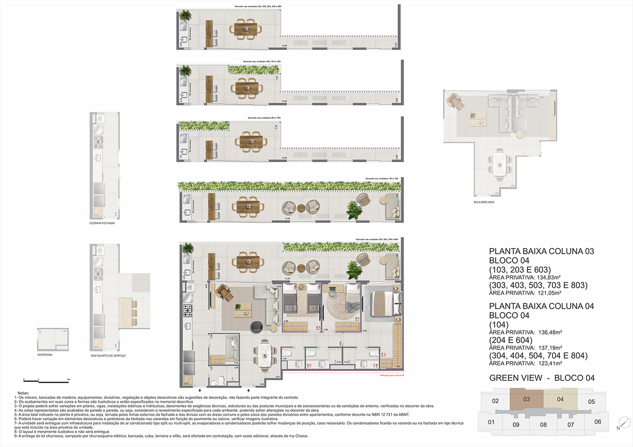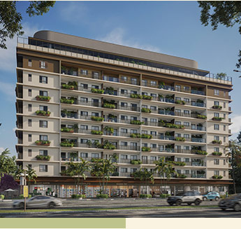 O cuidado de um condomínio em que cada prédio tem uma fachada exclusiva.