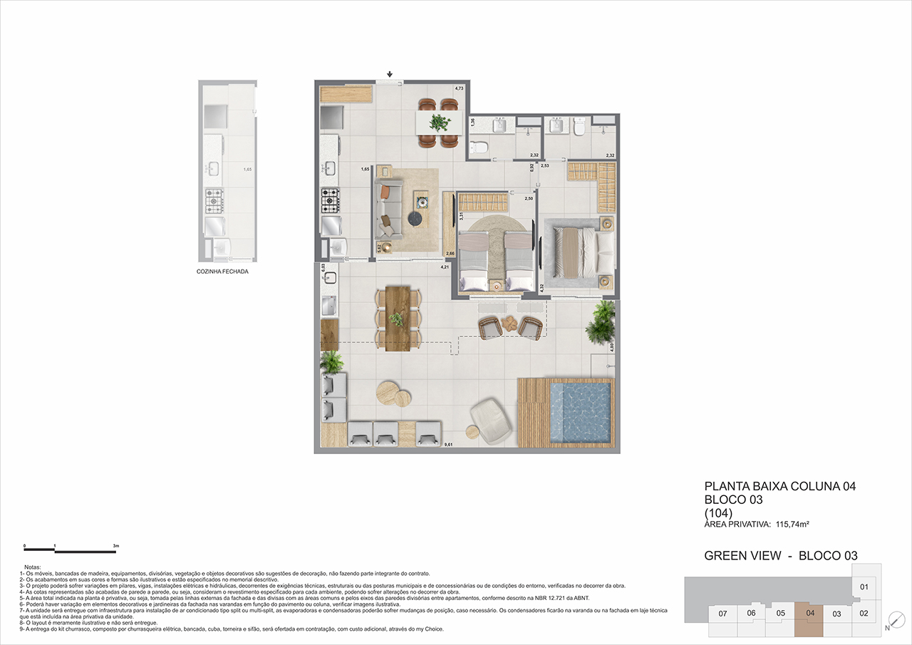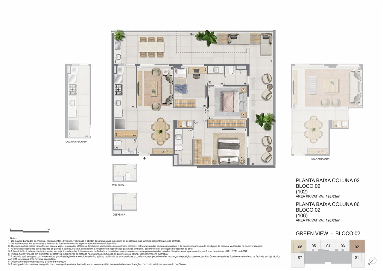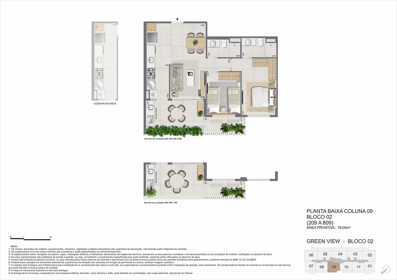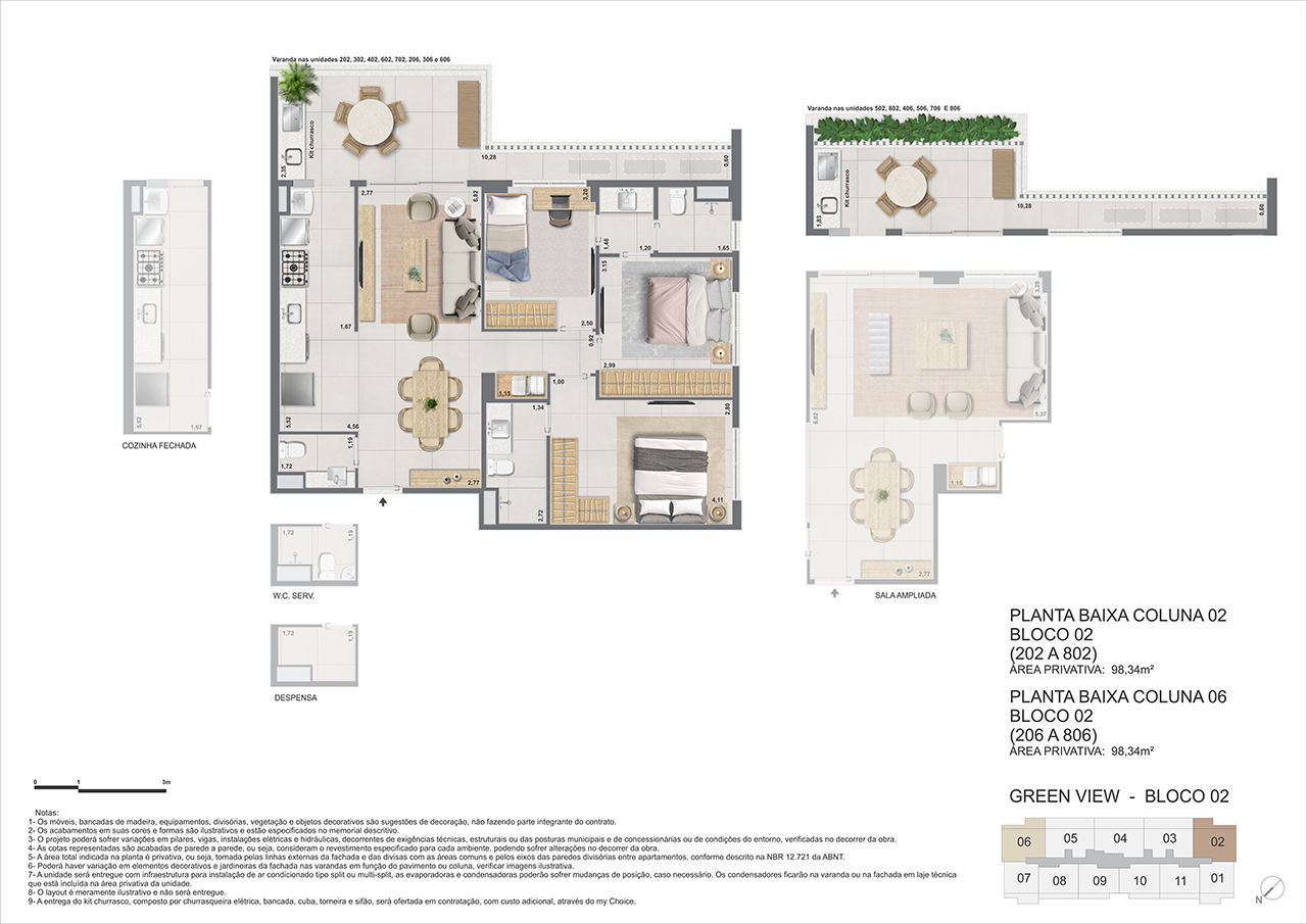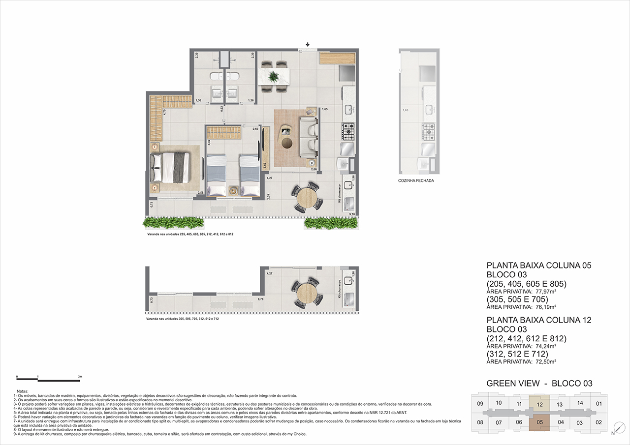 O cuidado de um condomínio em que cada prédio tem uma fachada exclusiva.