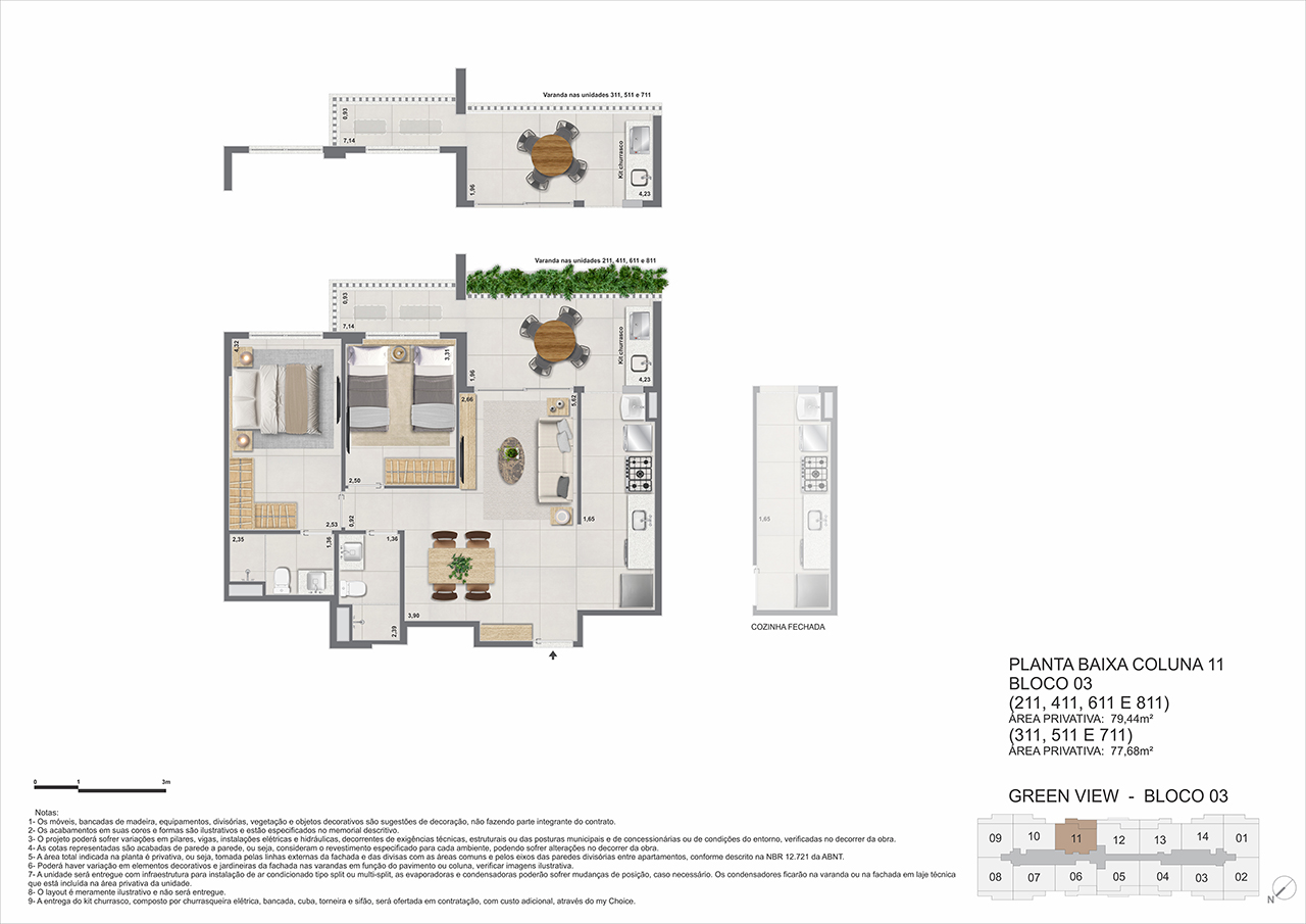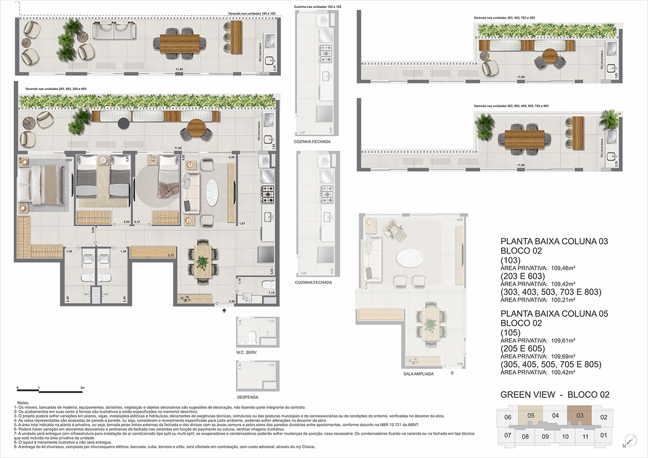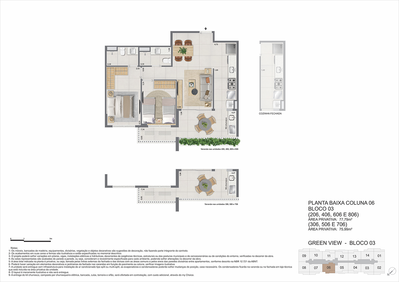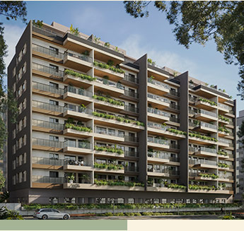 O cuidado de um condomínio em que cada prédio tem uma fachada exclusiva.