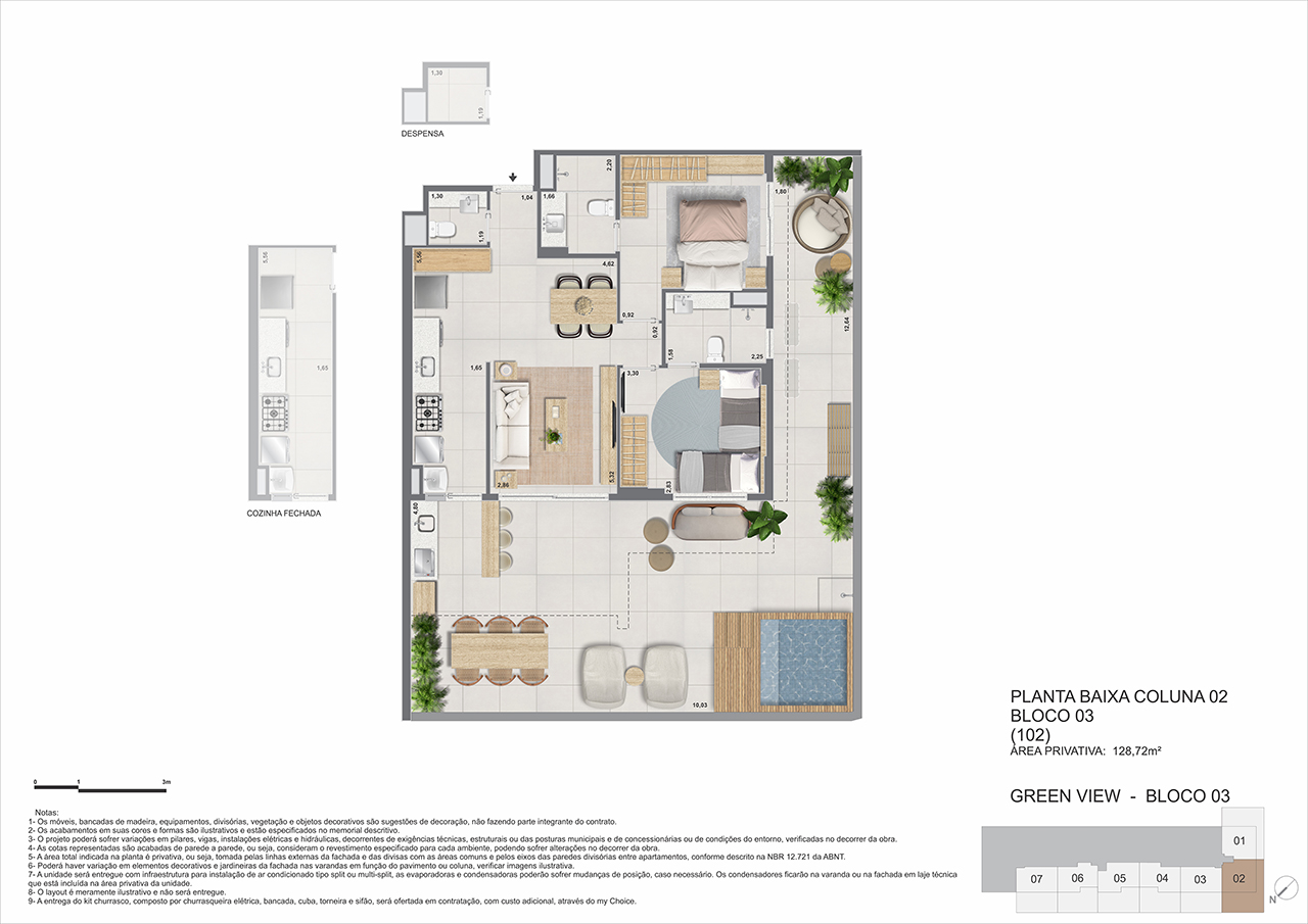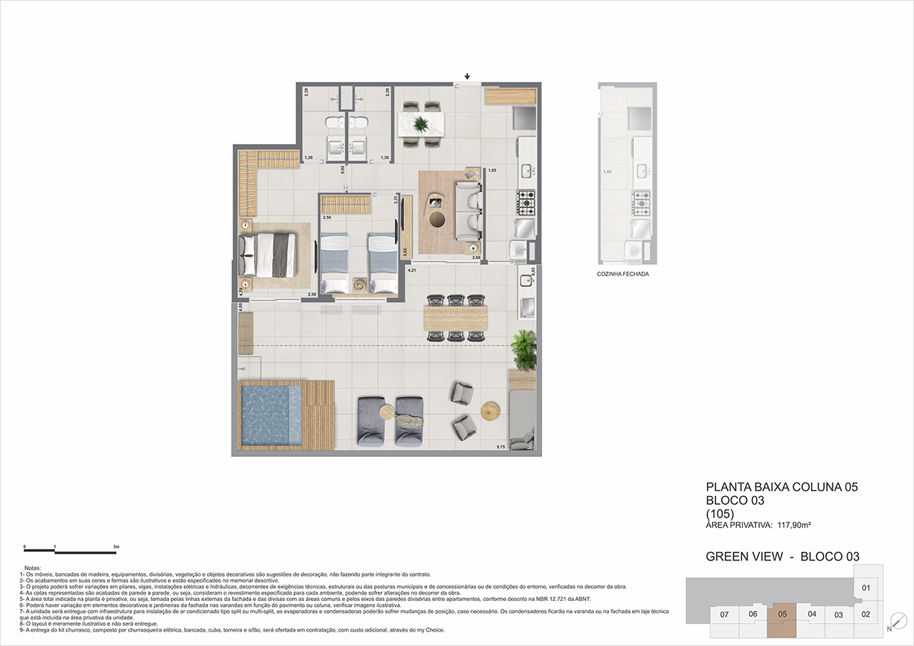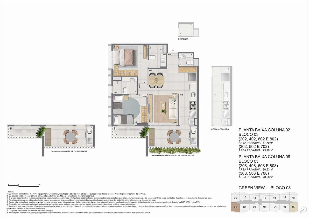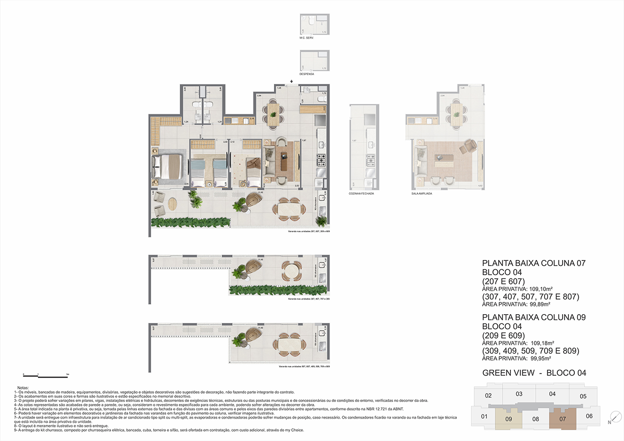 O cuidado de um condomínio em que cada prédio tem uma fachada exclusiva.